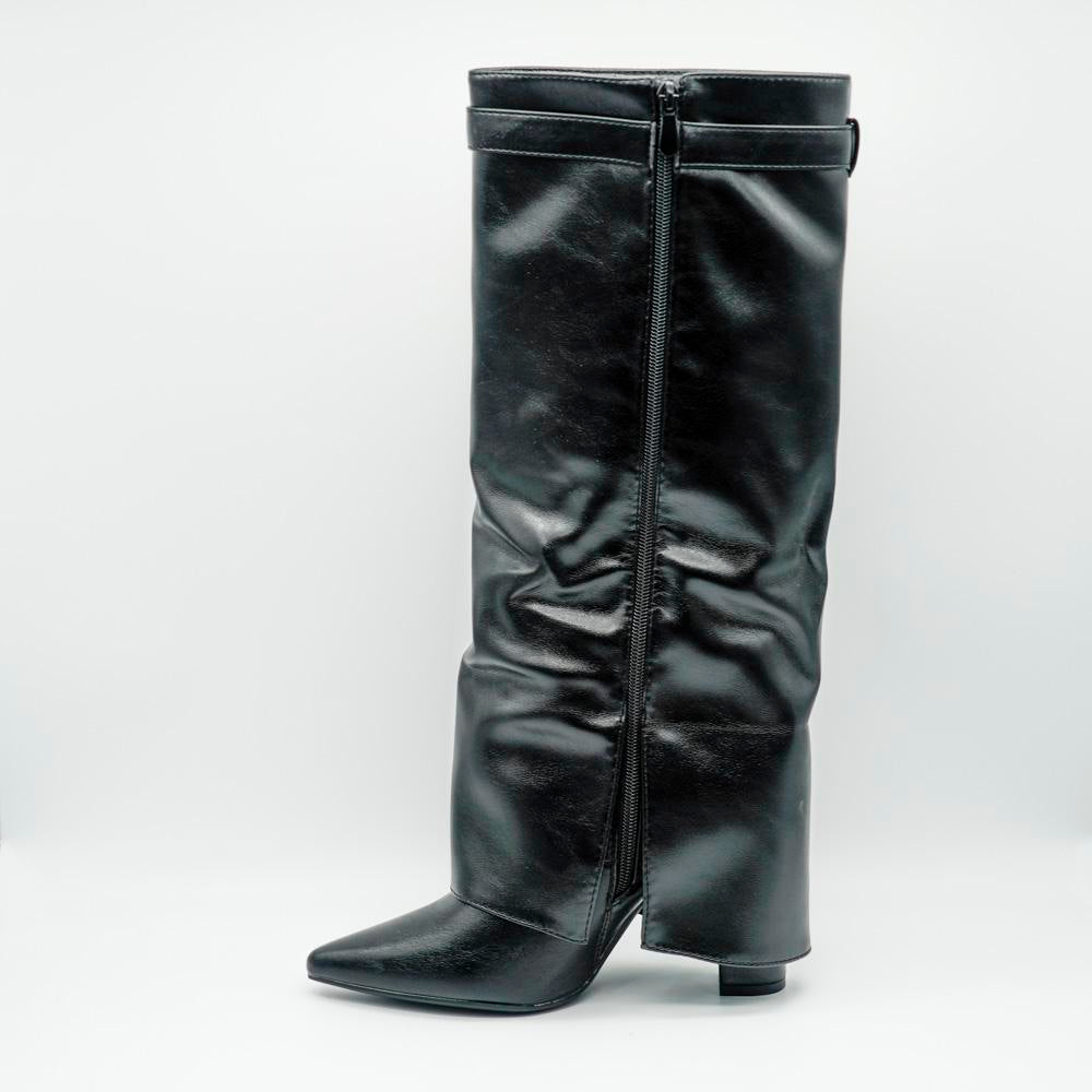 Perfetto da abbinare a un leggings effetto pelle, un abito corto o un blazer oversize, questo stivale trasforma qualsiasi outfit in una dichiarazione di stile audace e irresistibile.