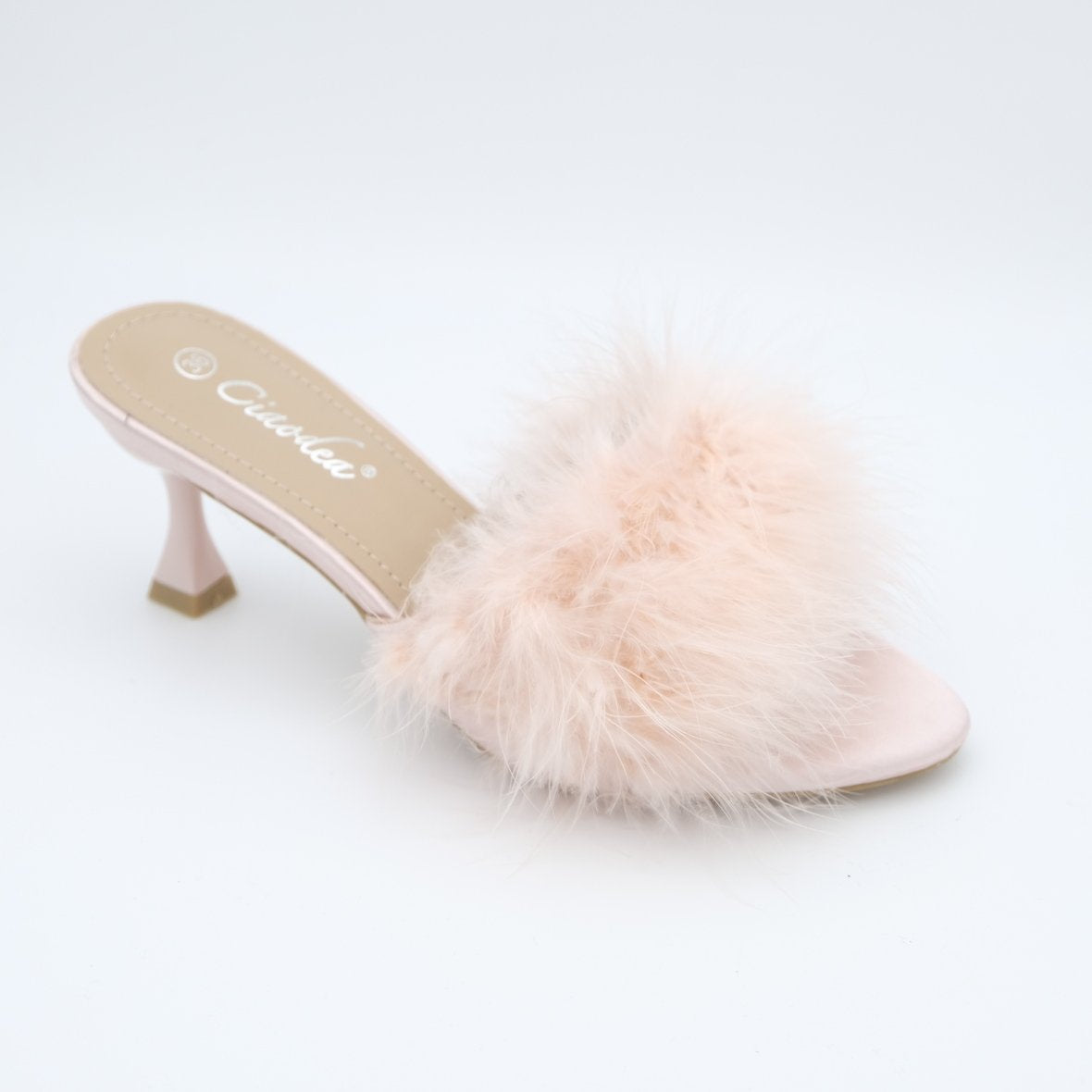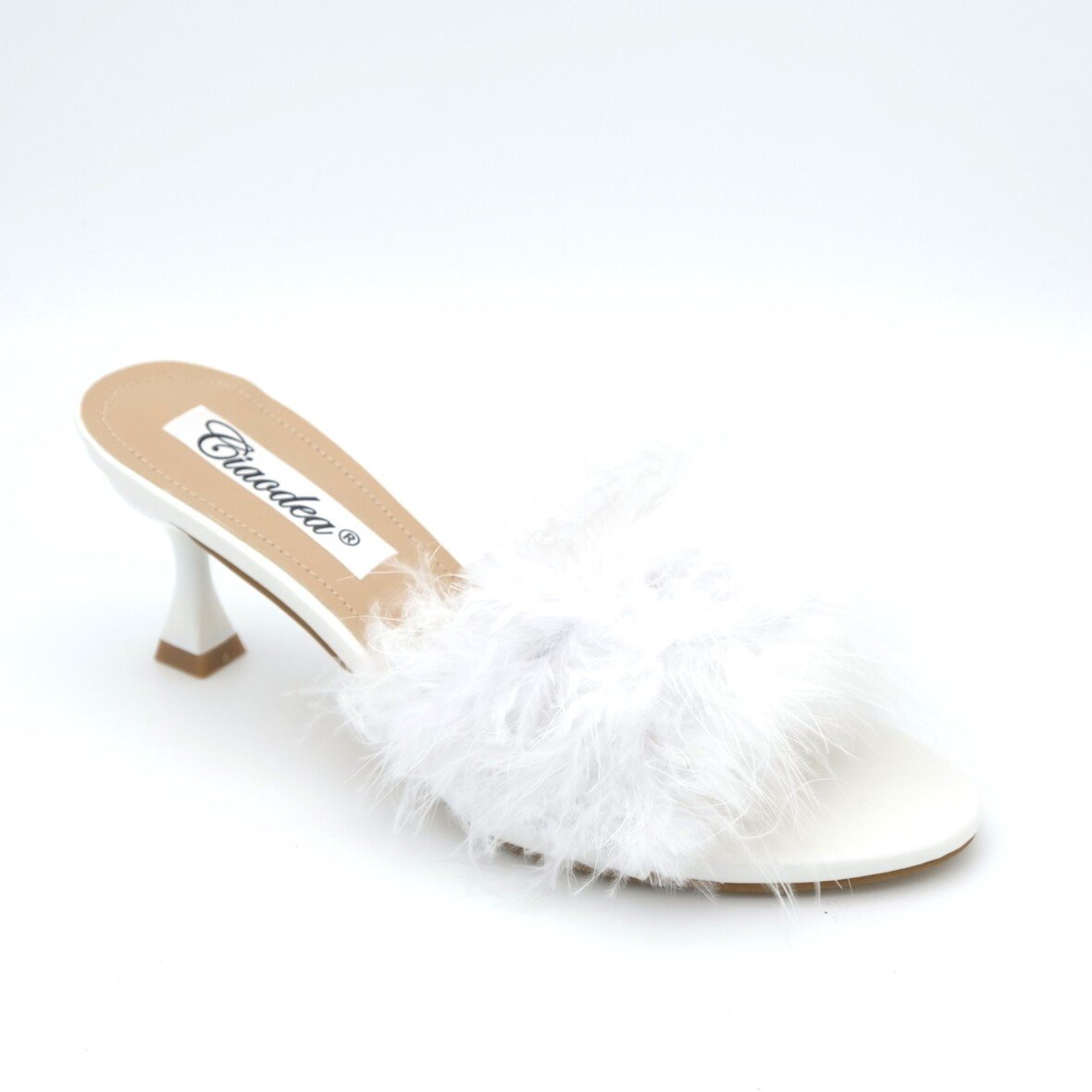 I sandali con tacco a rocchetto aggiungono un tocco glamour a qualsiasi outfit. Il dettaglio in piume regala un effetto sofisticato e originale, mentre la suola e il tacco stabile garantiscono una camminata comoda. Perfetti per serate eleganti o occasioni speciali.