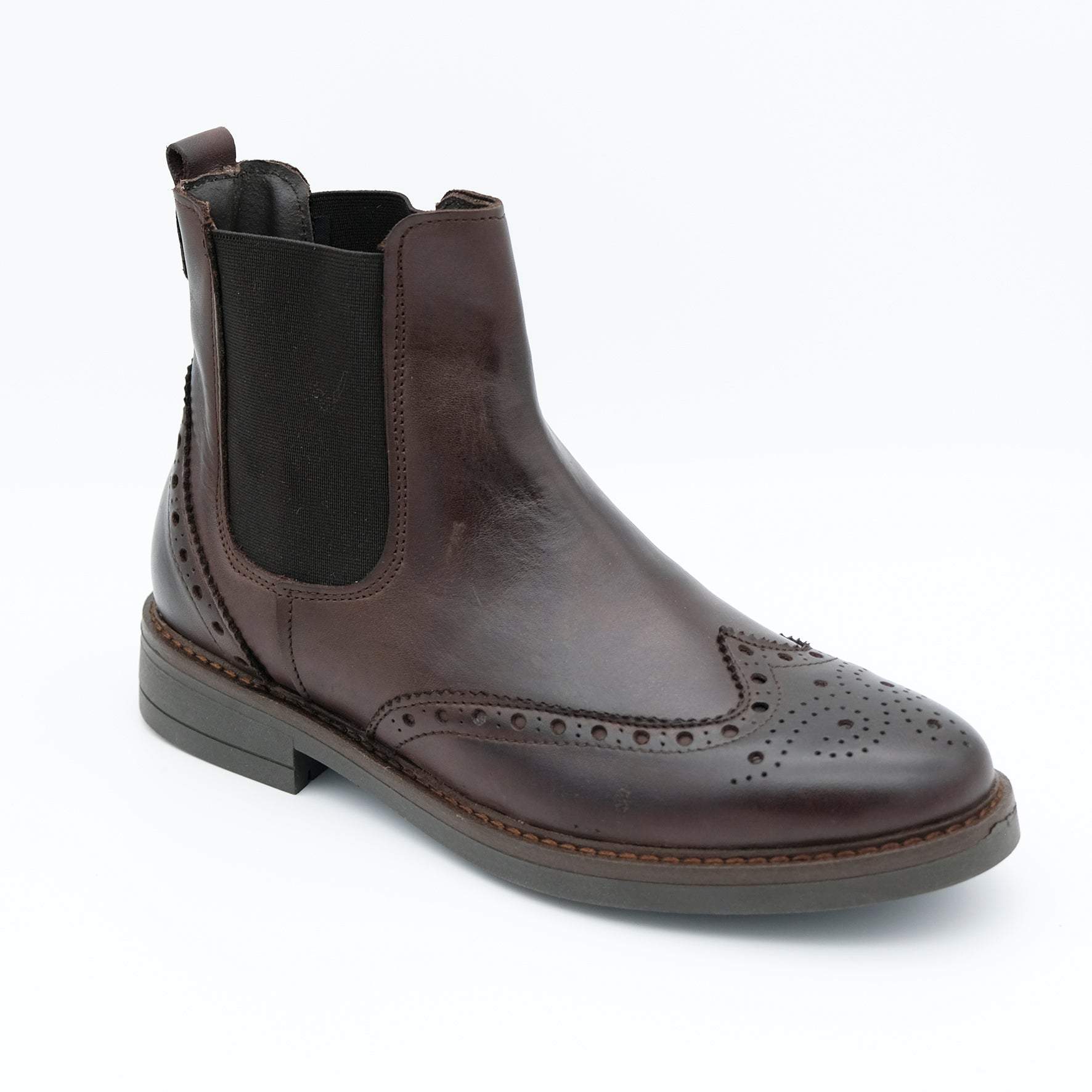Stivaletto Chelsea dallo stile classico e raffinato, arricchito con dettagli brogue che aggiungono un tocco di eleganza al design. Realizzato in pelle di alta qualita, offre resistenza e una finitura lucida che valorizza qualsiasi outfit formale o casual-chic. Gli inserti elastici laterali tipici dello stile Chelsea permettono una calzata facile e comoda, mentre la suola robusta garantisce stabilita e comfort durante la camminata. Perfetto per chi cerca una calzatura versatile e sofisticata, ideale per completare look eleganti o casual con un tocco distintivo.