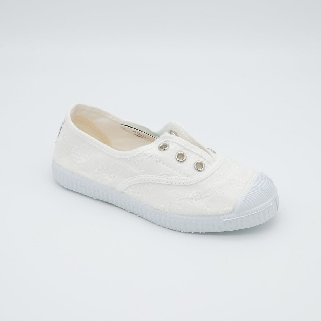 Questa sneaker Cienta è perfetta per i più piccoli, grazie al suo design pratico e confortevole. La tomaia in tessuto traforato assicura leggerezza e traspirabilità, mentre la suola flessibile offre un’ottima aderenza. Il modello senza lacci con occhielli metallici permette una calzata semplice e veloce, ideale per accompagnare i bambini in ogni momento della giornata.