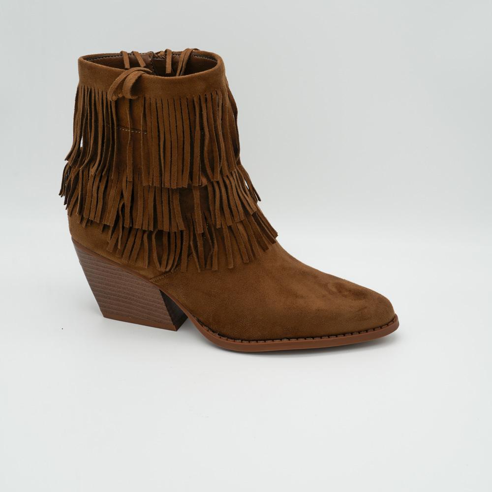 Un tronchetto dal carattere deciso e irresistibile, perfetto per chi ama distinguersi con un tocco di stile originale e grintoso. Le frange decorative donano movimento e personalità al design, richiamando un fascino boho-chic che non passa inosservato, mentre il tacco largo e stabile regala slancio e comfort per tutta la giornata. La punta affusolata e la forma avvolgente valorizzano la silhouette, rendendolo ideale sia per look casual con jeans e maxi maglioni, sia per outfit più ricercati con abiti e gonne. Un modello che unisce tendenza e praticità, pensato per chi vuole aggiungere al proprio guardaroba un dettaglio unico e irresistibile.