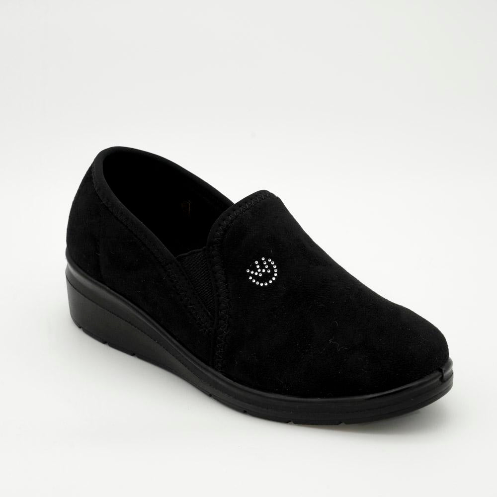 La suola leggera accompagna il movimento in modo naturale e dona una piacevole sensazione di comfort, ideale per chi trascorre molte ore in piedi o cammina a lungo. Il dettaglio luminoso applicato sulla parte superiore aggiunge un tocco discreto ed elegante, rendendo questa calzatura perfetta sia per l’uso quotidiano sia per completare un look pratico e curato.